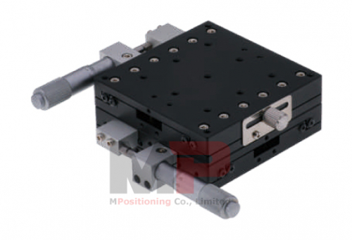 The Precision Manual XY Translation Stage T90XY-25L is stacked by 2 units of Single Axis Translation Stage T90X-25L and features Crossed-Roller Bearing Slide Guides. The 90 mm x 90 mm mounting platform supports up to 9.5 kg with a smooth XY-Axis adjustment range of ±12.5 mm. The actuator of Micrometer Head drives in leftside position of the Single-Axis Stage.