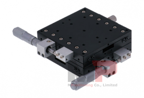 The Precision Manual XY Translation Stage T90XY-25R is stacked by 2 units of Single Axis Translation Stage T90X-25R and features Crossed-Roller Bearing Slide Guides. The 90 mm x 90 mm mounting platform supports up to 9.5 kg with a smooth XY-Axis adjustment range of ±12.5 mm. The actuator of Micrometer Head drives in rightside position of the Single-Axis Stage.